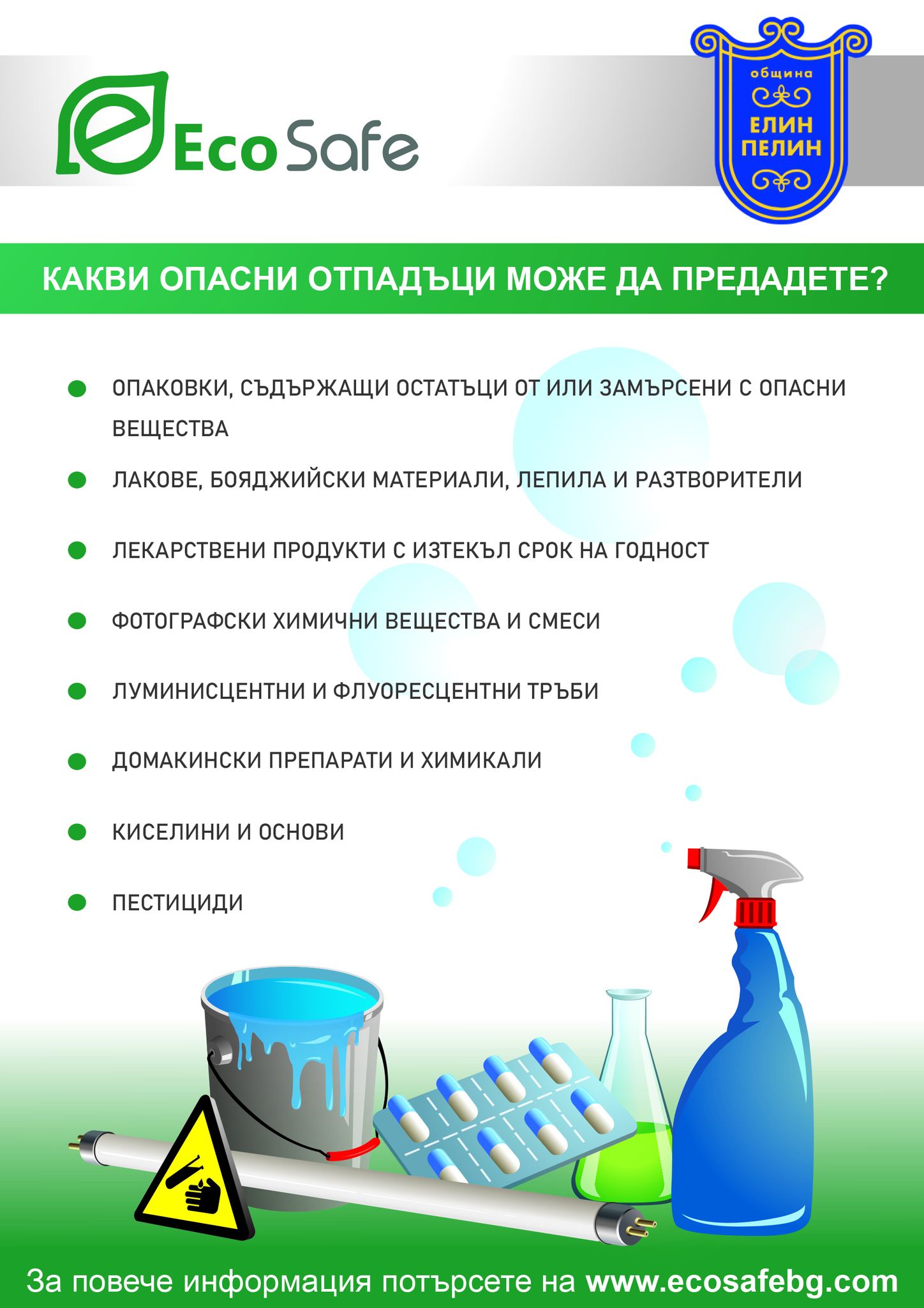 На 3 октомври 2025 г. в населените места - гр. Елин Пелин, с. Столник, с. Равно поле, с. Нови хан и с. /гара/ Елин Пелин ще бъде разположен мобилен пункт за събиране на опасни отпадъци