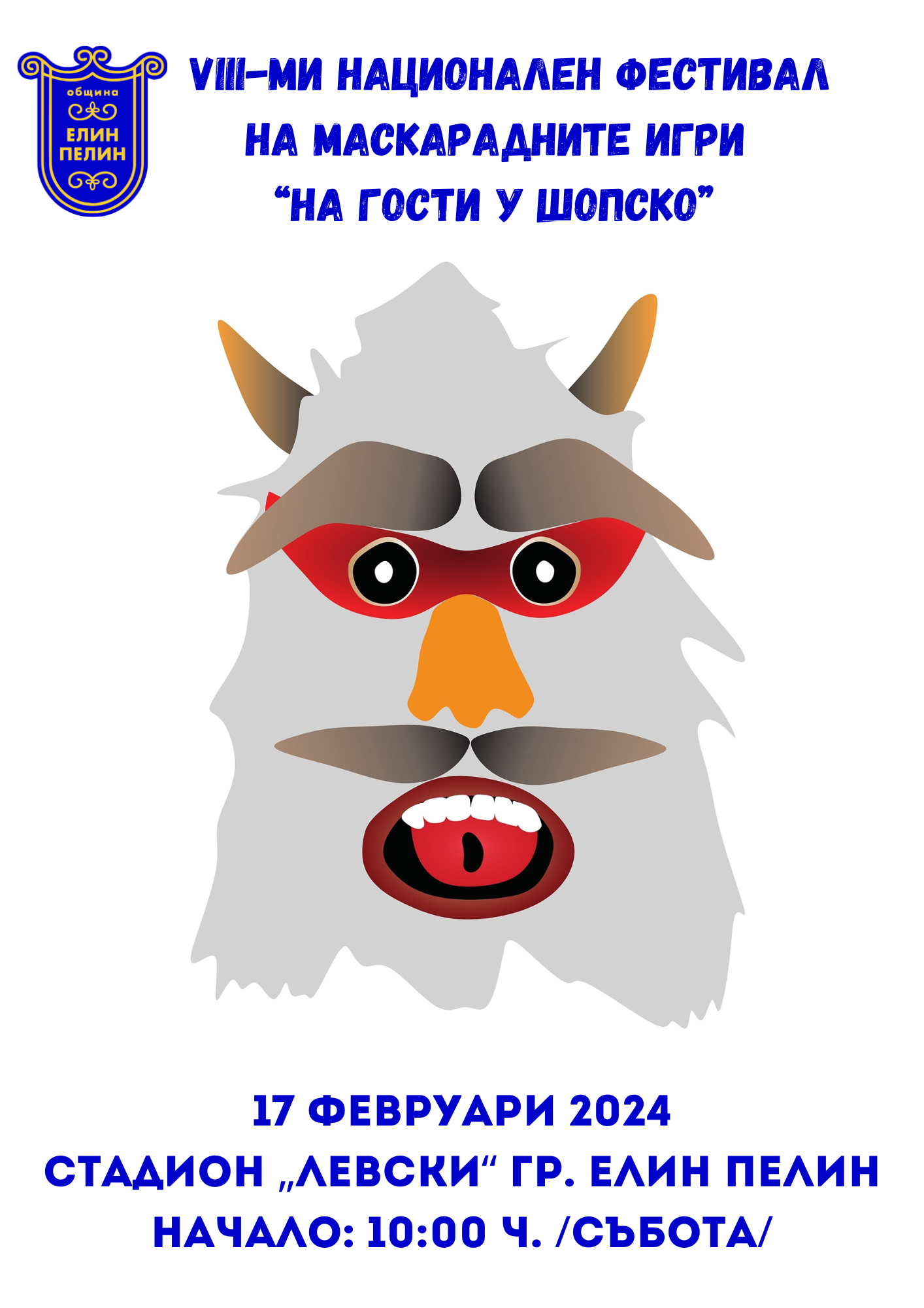 Заповядайте в събота – 17 ФЕВРУАРИ от 10:00 ч., на стадион "Левски" в град Елин Пелин, където ще може да видите различни и впечатляващи маскарадни игри от пъстрия фолклор на цяла България.